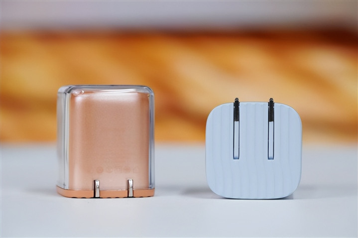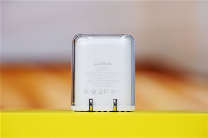 在产品外观上,倍思同芯充Pro也全新升级冰透美学设计,通过二次注塑工艺,形成内外双层的空间透视,极具呼吸美感。可折叠的充电插脚设计,也让本就小巧的倍思同芯充Pro,更加便携易收纳。